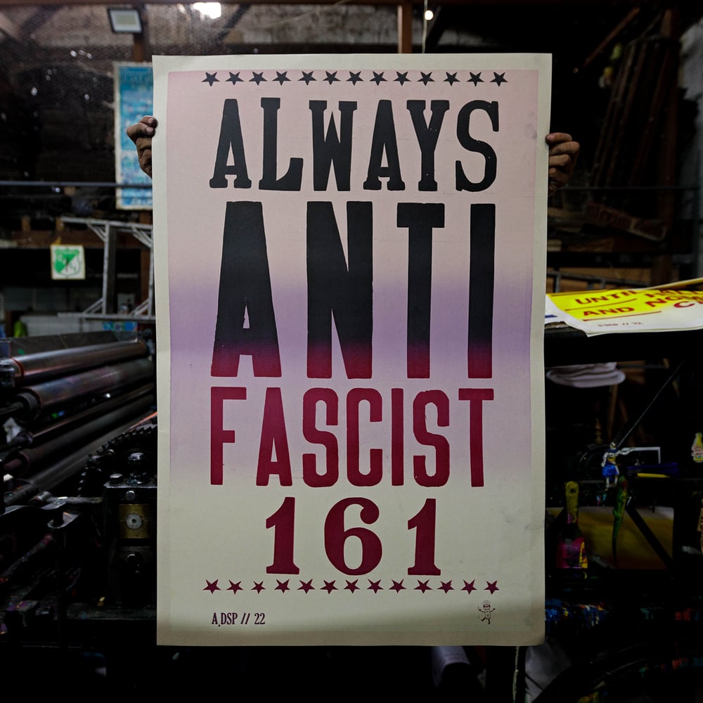 La Linterna printed this poster range in collaboration with Dog Section Press. They are produced in the tradition of radical street propaganda.