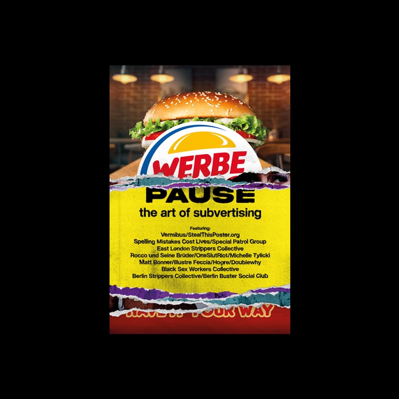 The book of the first international exhibition of subvertising that ran at Kunstraum Kreuzberg, Berlin in 2022. Werbepause (Adbreak): The Art of Subvertising showcases work by an international collective of artists appropriating and altering billboards and other advertising spaces in the service of artistic mischief and social issues - from hyper-consumerism, the climate crisis, and surveillance capitalism to police violence, religious authority and the criminalisation of sex workers.